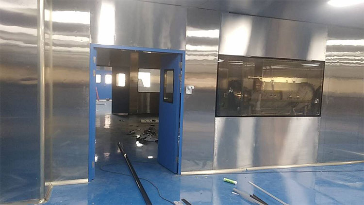無錫易純凈化設備有限公司是一家集凈化工程、凈化設備為一體的一站式供應商,安徽綠帝食品有限公司作為阜陽市當地清真食品加工龍頭企業,除了對凈化系統要求是十萬等級外,對風淋室要求也很高,由于肉制品生產企業在生產過程中,高濕高鹽,所以需要采用304不銹鋼外殼材質的風淋室,還需配置PLC智能化控制系統,在顯示屏上顯示風淋運行狀態、雙門的互鎖狀態、風淋周期進度和延時開門狀態等。