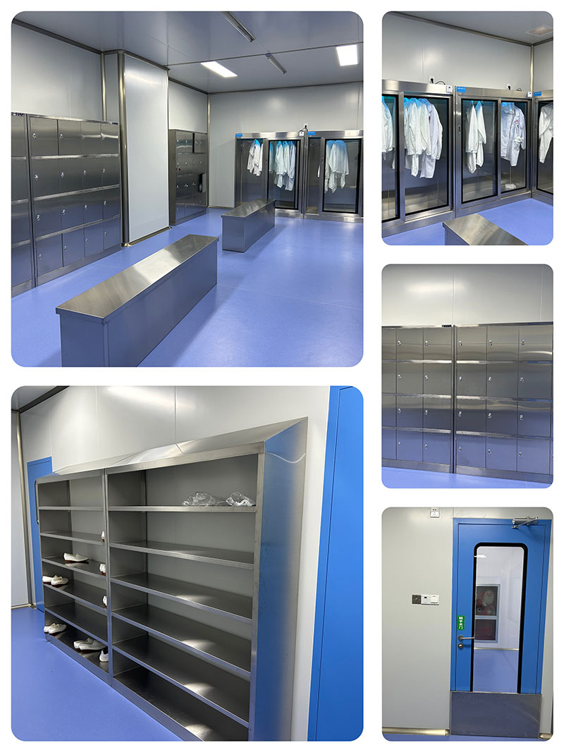 更衣室入口設置門禁和擋鼠板,內部不銹鋼鞋柜和衣柜,二更內配紫外線消毒衣柜